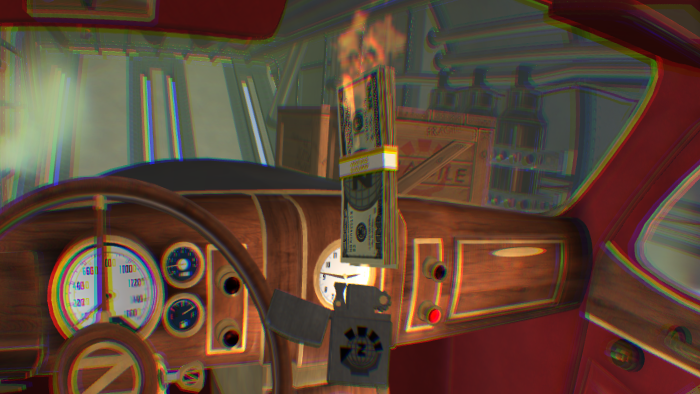게임의 첫번째 무대는 차안이다. 독가스가 새어 나오는 어느 공간 속 차안에 갇힌 주인공은 이 곳을 탈출해 살아 남아야 한다. 주변을 둘러 보면 별의 별 소품들을 다 확인할 수 있다. 권총이나 시가, 샴페인, 차 키 까지 차안에는 많은 물건들이 존재한다. 마치 맥가이버라도 된 양 모든 물건들을 조합해 탈출하기 위한 수단으로 삼아야 한다.