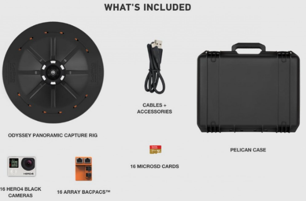 현재 고프로 오디세이는 자격요건이 되는 사람에 한해 한정판으로 공급되고 있으며 홈페이지(http://ko.gopro.com/odyssey)를 통해 신청가능하다. 오디세이로 어떤 영상을 촬영할지, 현재 어떤방식으로 촬영하여 공유하고 있는지에 관한 질문과 이전 촬영영상의 링크도 자격요건에 해당된다. 가격은 1만 5천달러(원화로 약 1천8백만원)로 가격또한 만만치가 않다. 구성품으로는 오디세이 파노라마 리그, 16대의 hero black4카메라, 펠리칸케이스, sd카드등이 포함되어 있다.