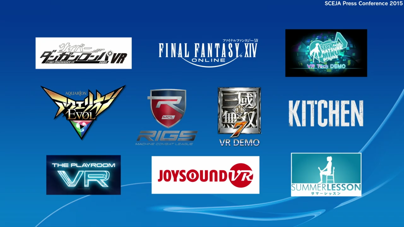 이번에 공개된 라인업은 기존 프로젝트모이퍼스용 데모인 '서머레슨', '플레이룸'을 포함해 총 10종의 타이틀이 공개됐다. 그 중에서도 '진삼국무쌍7', '파이널판타지 14'와 같은 대형 타이틀의 VR버전이 예고돼 있어 흥미를 사로잡는다.